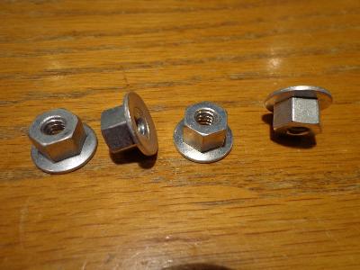 70-74 Cuda Challenger Heater Blower Motor Nuts for A/C cars. 10-24 inch tall nut, with spinner washer and silver cadmium plating. Includes 4 nuts. These can be seen on the firewall. We also sell 1/4-20 nuts for non-A/C cars.