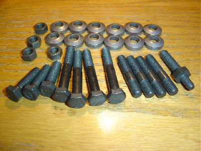 New OEM Correct 71-74 318 340 360 exhaust manifold fastener set. Includes all the parts in the photo. The parts are the same size, head markings and plating as originals.