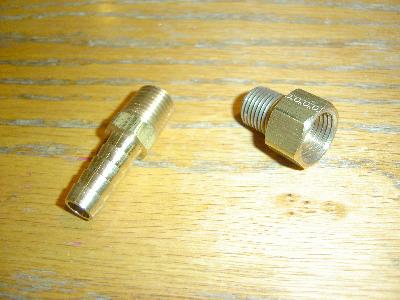 66-67 Mopar 426 Hemi B Body Fuel Pump Fittings. Includes the 2 fittings in the photo. both for a 3/8 inch fuel line.
