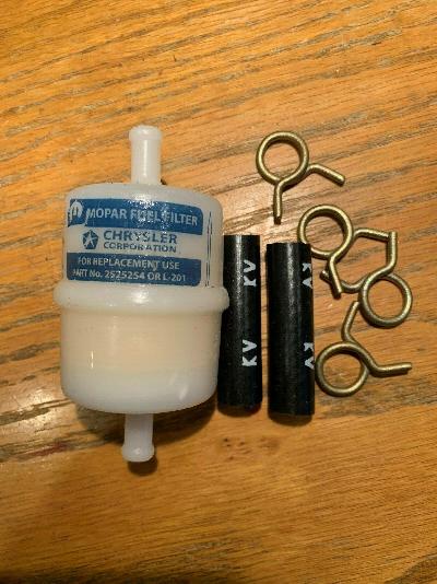 1963-1967 and 68 426 Hemi Super Stock Mopar 5/16 Inch Fuel Filter Set. Reproduction of the filter installed on the assembly line. Mopar Authentic Restoration Product