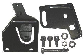 1964-69 Small Block LA engines with cast iron water pump housings and TRW or Thompson pumps. Fits both A/C and non-A/C applications. Includes (3) 5/16-18 hex coni sems bolts to attach the brackets to the pump body and the "H" head bolt, conical washer, and nut used to mount the brackets to the water pump housing. Extra washer provided for use on water pump housing bolt in adjusting slot. Powder coated low gloss black.
